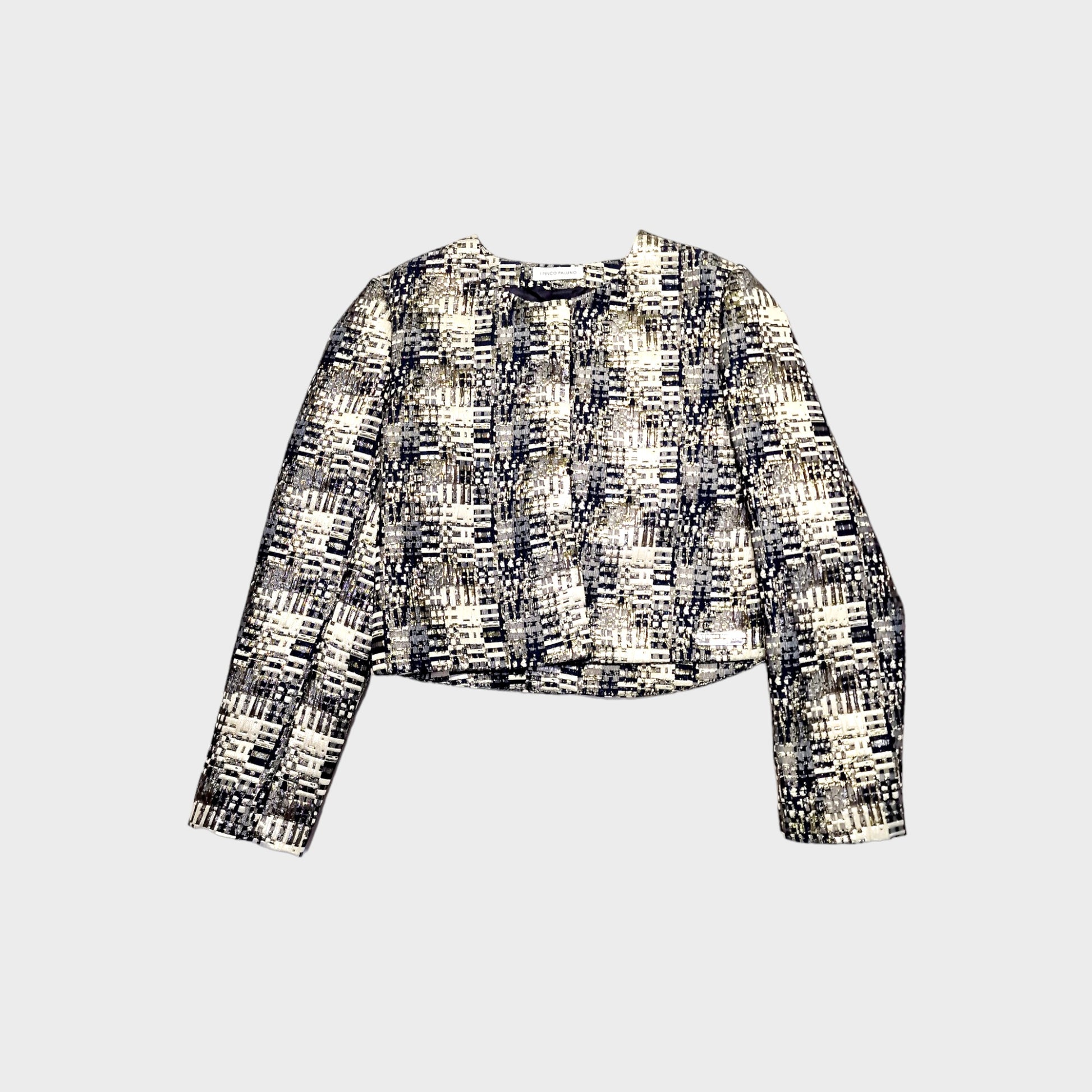 Giacca laminata fantasia a quadri 93% Poliestere 7% Fibra Metallica Fodera: 100% Viscosa